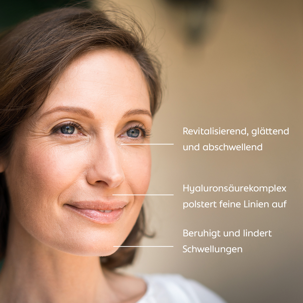 - Hyaluronsäure-Komplex polstert feine Linien sichtbar auf