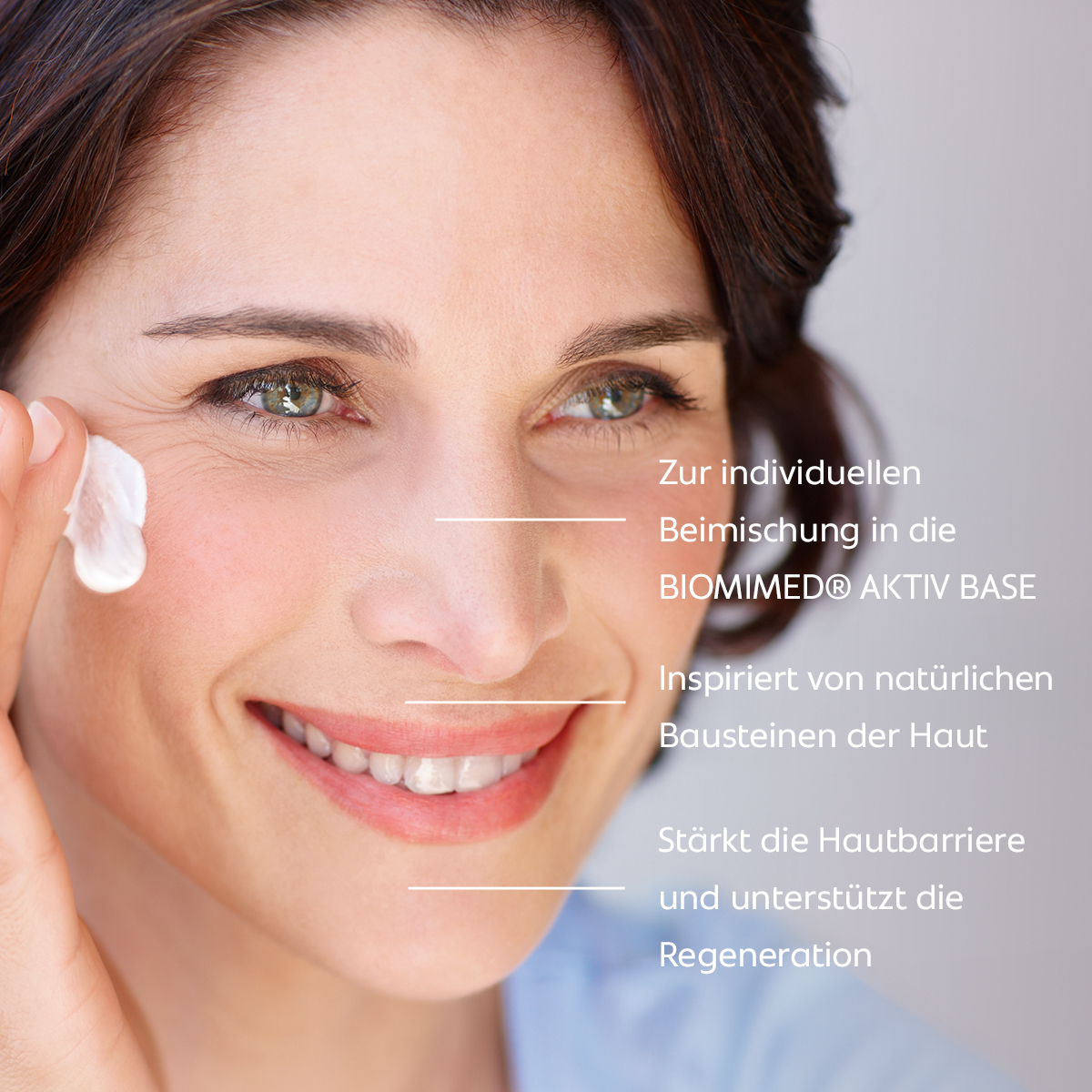 Zur individuellen Beimischung in die BIOMIMED® AKTIV BASE – für ein Plus an Pflege bei trockenem Hautgefühl oder erhöhtem Pflegebedarf.