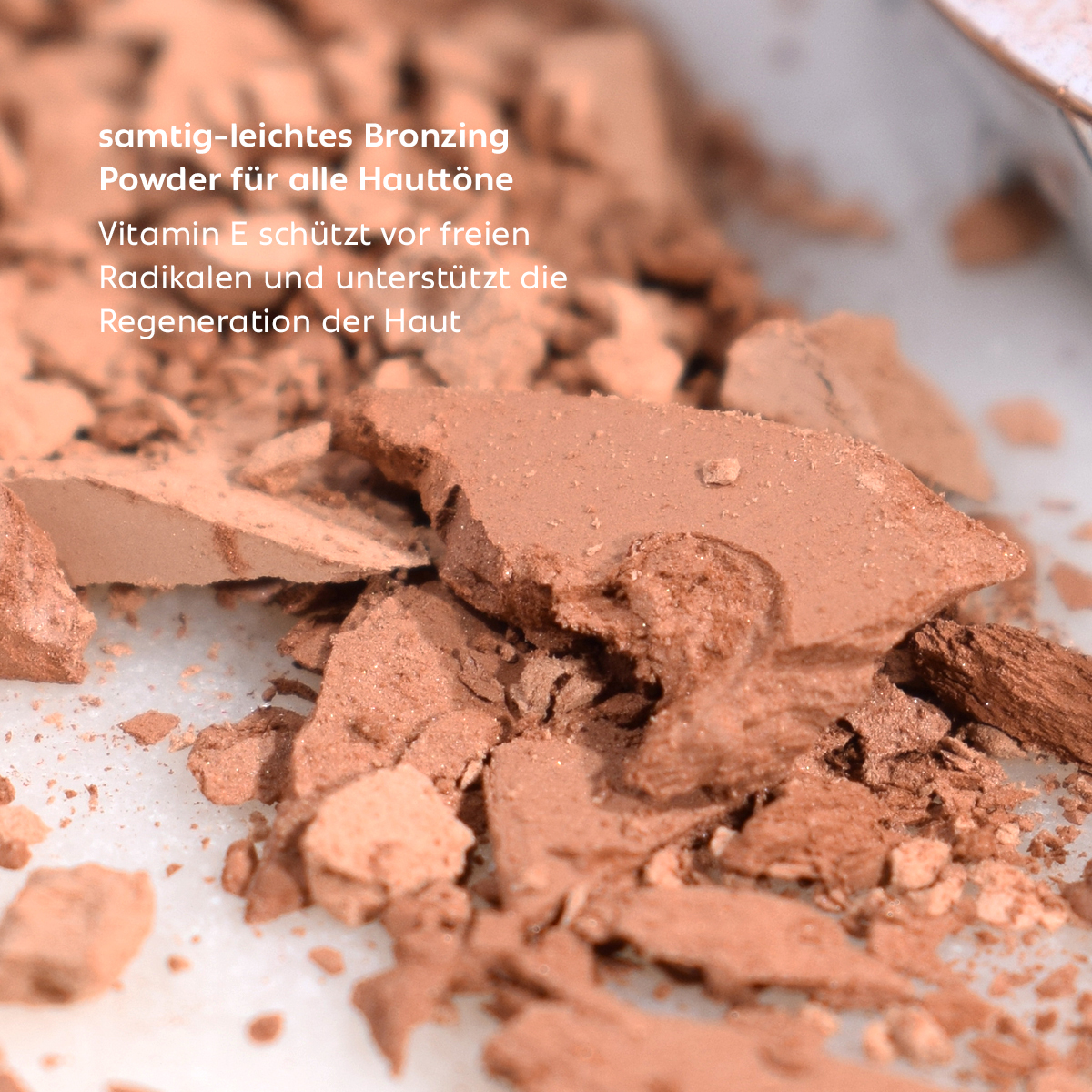 Sommerbräune im Handumdrehen: Der BRONZING POWDER verleiht eine natürlich gebräunte Ausstrahlung – das ganze Jahr über. Die samtig-leichte Textur lässt sich mühelos auftragen und verblenden. Zwei warme Farbtöne passen sich harmonisch an den individuellen Hautton an. Vitamin E schützt vor freien Radikalen und unterstützt die Regeneration der Haut. Spezielle Pigmente im BRONZING POWDER entfalten sofort ihre Wirkung ohne Nachzudunkeln.
