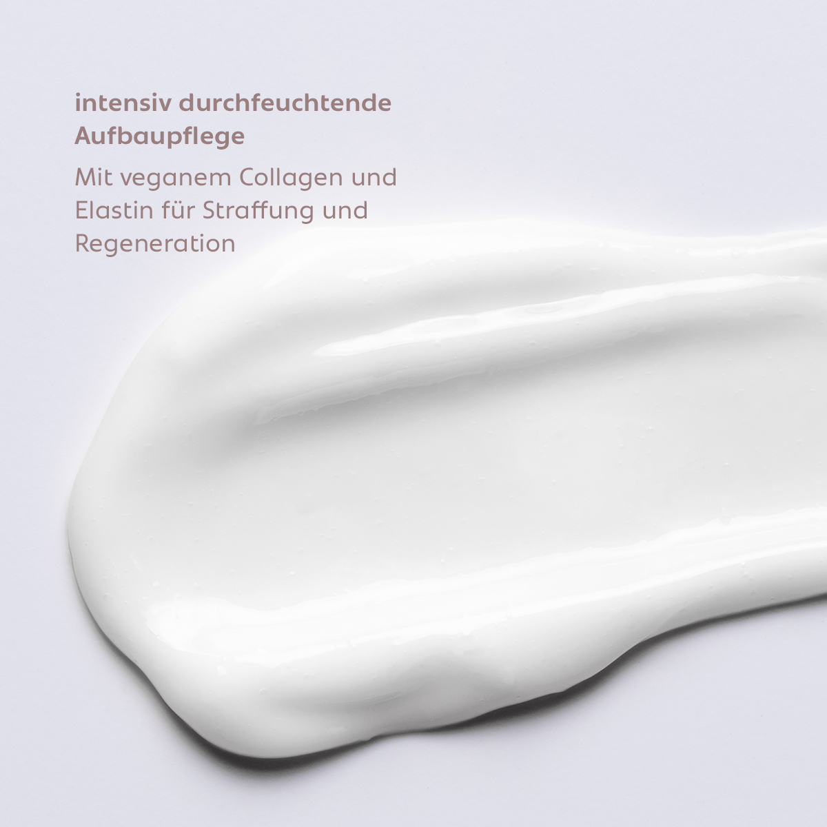 Die COLLAGEN ELASTIN PACKUNG spendet intensive Feuchtigkeit und unterstützt die Haut dabei, ihre natürliche Spannkraft zu bewahren. Veganes Collagen und Elastin fördern die Elastizität, glätten feine Linien und schenken ein geschmeidig glattes Hautgefühl. Die Haut wirkt erholt, vital und frisch belebt.