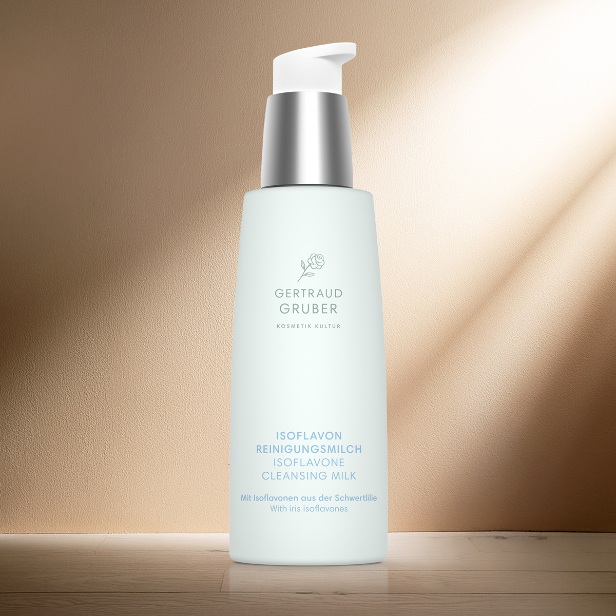 Spüren Sie, wie die ISOFLAVON REINIGUNGSMILCH Ihre Haut sanft umschmeichelt und dabei gründlich von Schmutz und Make-up befreit. Isoflavone aus der Schwertlilie stärken die Zellstruktur und helfen, hormonell bedingten Zeichen der Hautalterung entgegenzuwirken. Sie sorgt schon während der Reinigung für ein geschmeidiges, samtiges Gefühl und bereitet die Haut optimal auf die nachfolgende Pflege vor.