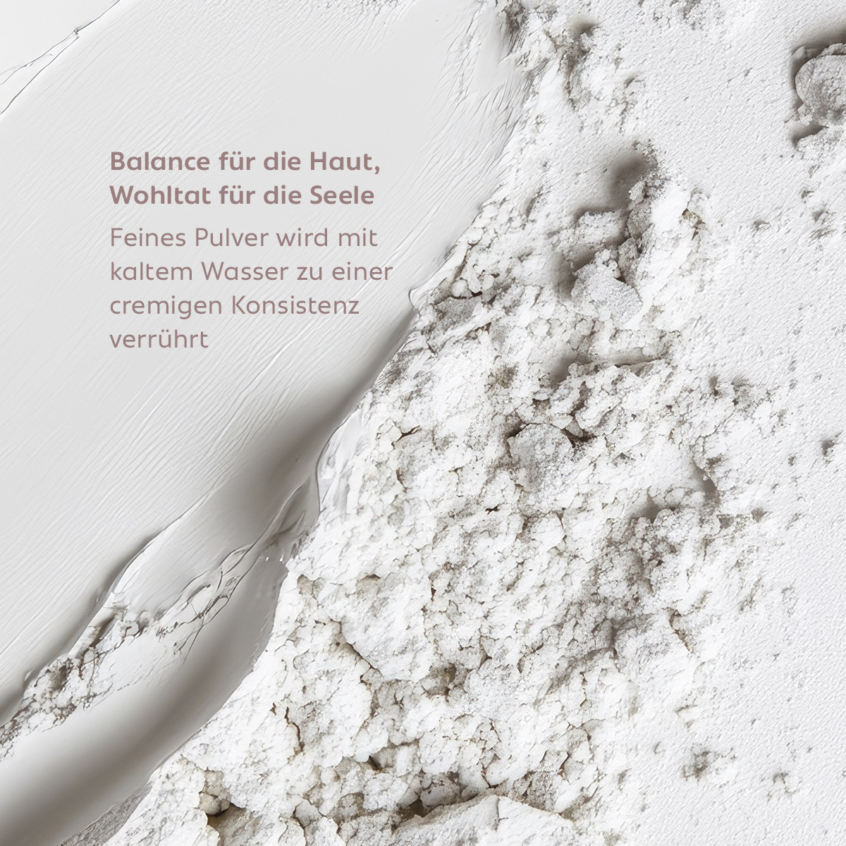 1 Teelöffel Pulver mit 4 Teelöffeln kaltem Wasser anrühren, bis eine cremige Konsistenz erreicht wird. Auf Gesicht, Hals und Dekolleté verteilen. Nach ca. 10 Minuten mit einer lauwarmen Kompresse abnehmen.